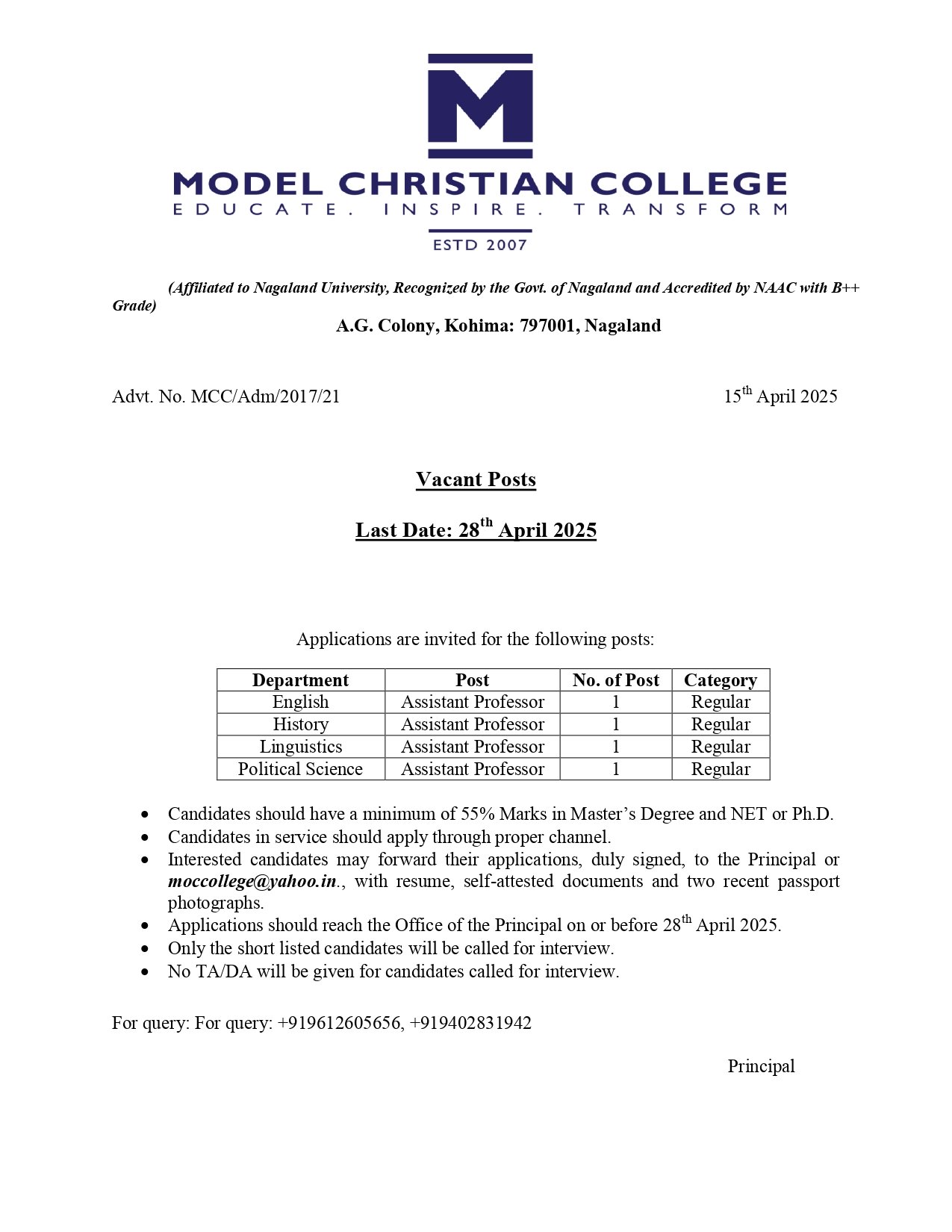 The competition has been conceptualized to provide a platform for the students to showcase their talents. The three-judge panel of the competition included Miss Virie (singer, songwriter and composer), Mr. Kevisa Khamo (HR Manager and Event Coordinator of Musician’s Guild, and proprietor Go-getters enterprises) and Miss Lam Grace Touthang ( Director of Nagaland Dance Fiesta, proprietor of MYC Lam Grace Dance Studio). Mr. Pfutsuveilo Ladu of Model Christian College won the first position with a cash prize of Rs. 15,000. Miss Hümünülü Curhah of Patkai Christian College won second position with a cash prize of Rs. 10,000. The third position with a cash prize of Rs. 5,000 went to Mr Roshan Narzari of St. Joseph College. Consolation prizes of Rs. 1,000 each were awarded to five participants, namely, Miss Kunili Ayeh of St. John College, Miss Angela Tamang of Oriental College, Miss Sentieinla Kichu of Don Bosco College, Mr. Tahimu Trakha of Kohima College and Mr. Gideon Sumi of Tetso College. During the event, Principal Dr. Luke Rymbai gave a welcome address while vote of thanks was delivered by Asst. Prof. And Even Coordinator Jamkhanmoi Tombing. Altogether 13 colleges participated in the event.