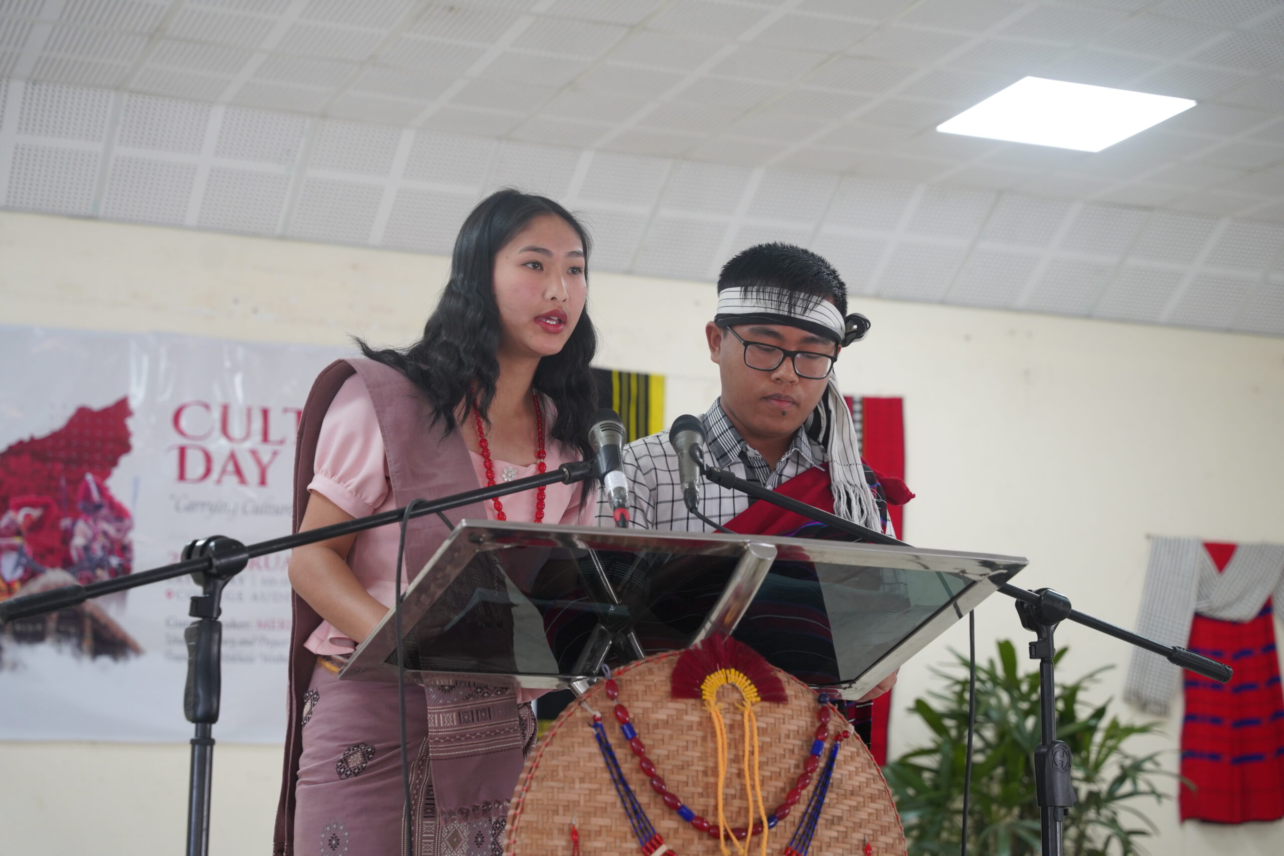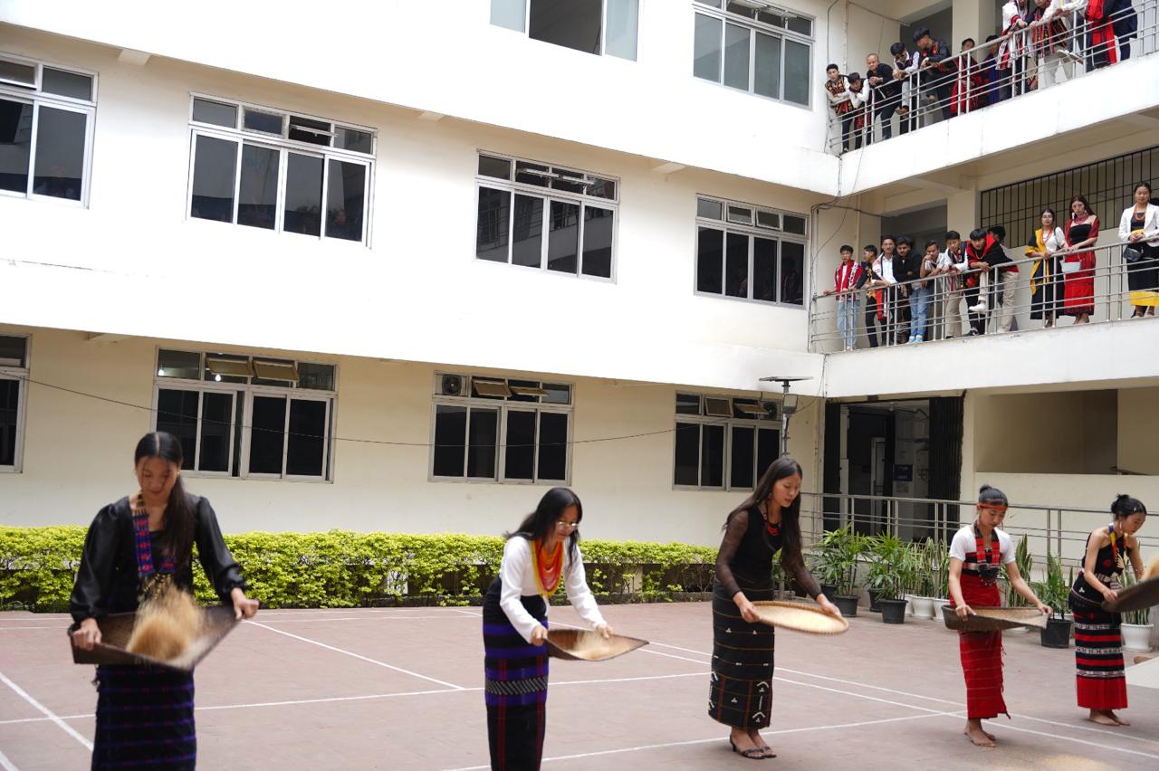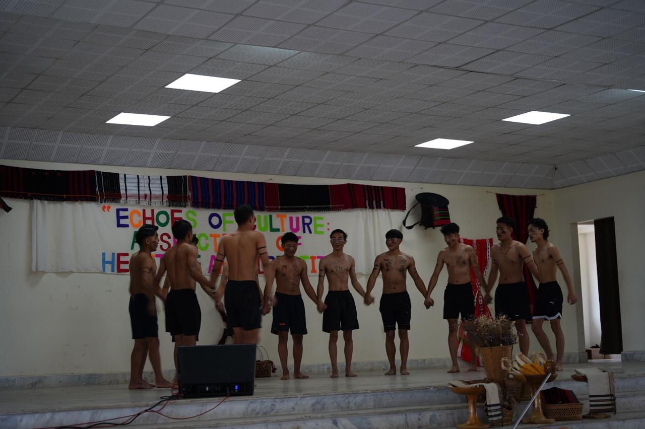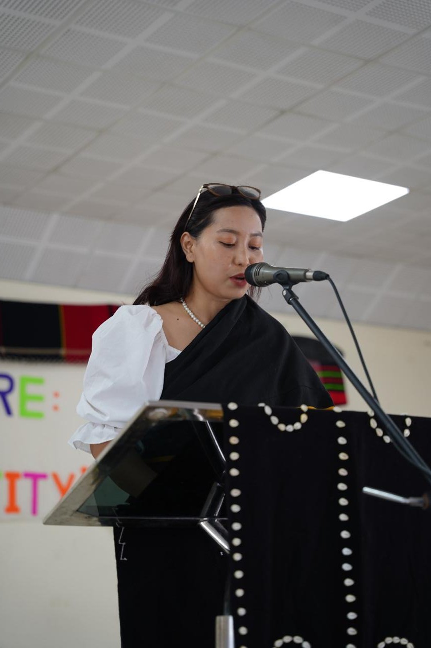 The event featured enriching presentations including The History of Konyak Headhunters, My Land (a folk fusion performance), and The Three Sons: A Naga Origin Myth. The programme was graced by the guest speaker, Meripeni, Under Secretary and Project Lead, NSEDM, and Founder of the Mekhela Wednesday Movement, who encouraged students to value and preserve their cultural heritage.