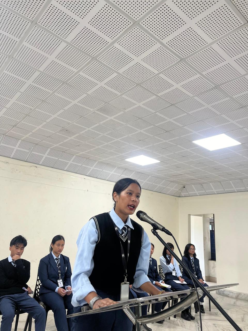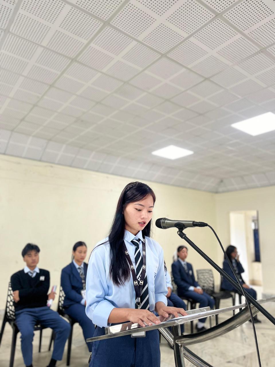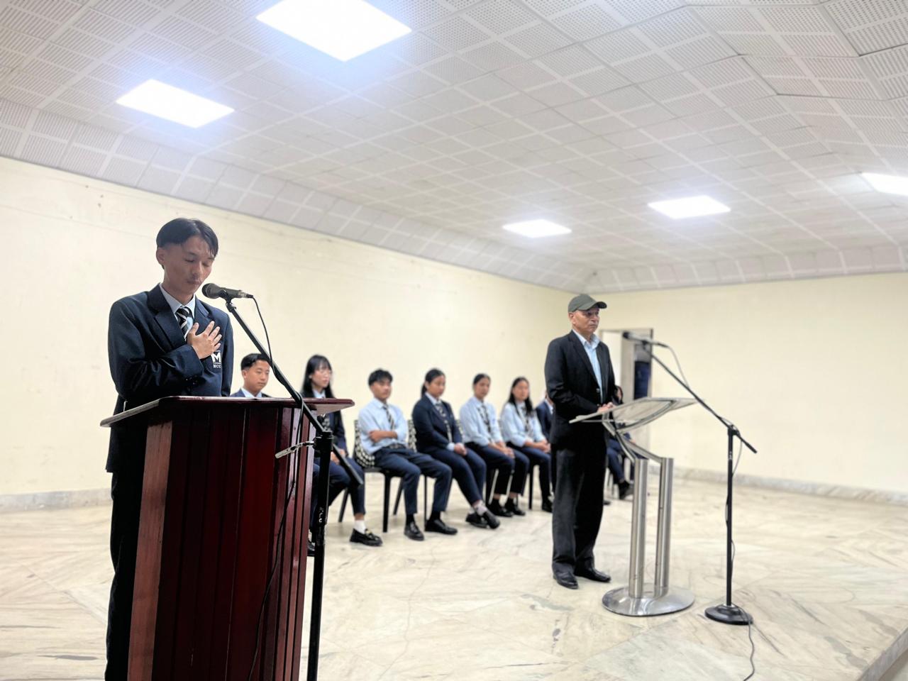 The event featured enriching presentations including The History of Konyak Headhunters, My Land (a folk fusion performance), and The Three Sons: A Naga Origin Myth. The programme was graced by the guest speaker, Meripeni, Under Secretary and Project Lead, NSEDM, and Founder of the Mekhela Wednesday Movement, who encouraged students to value and preserve their cultural heritage.