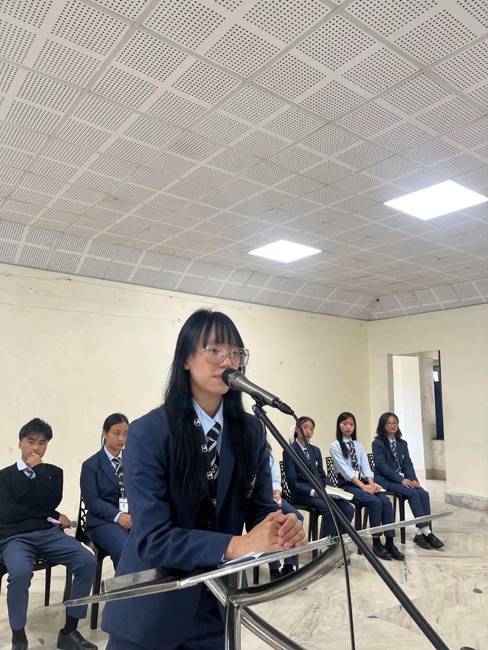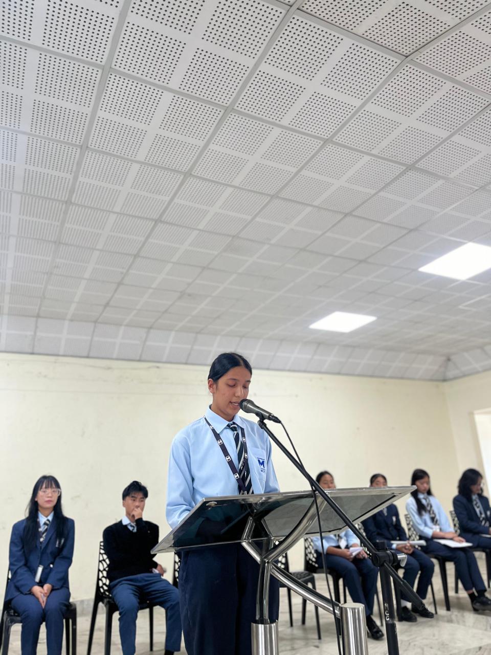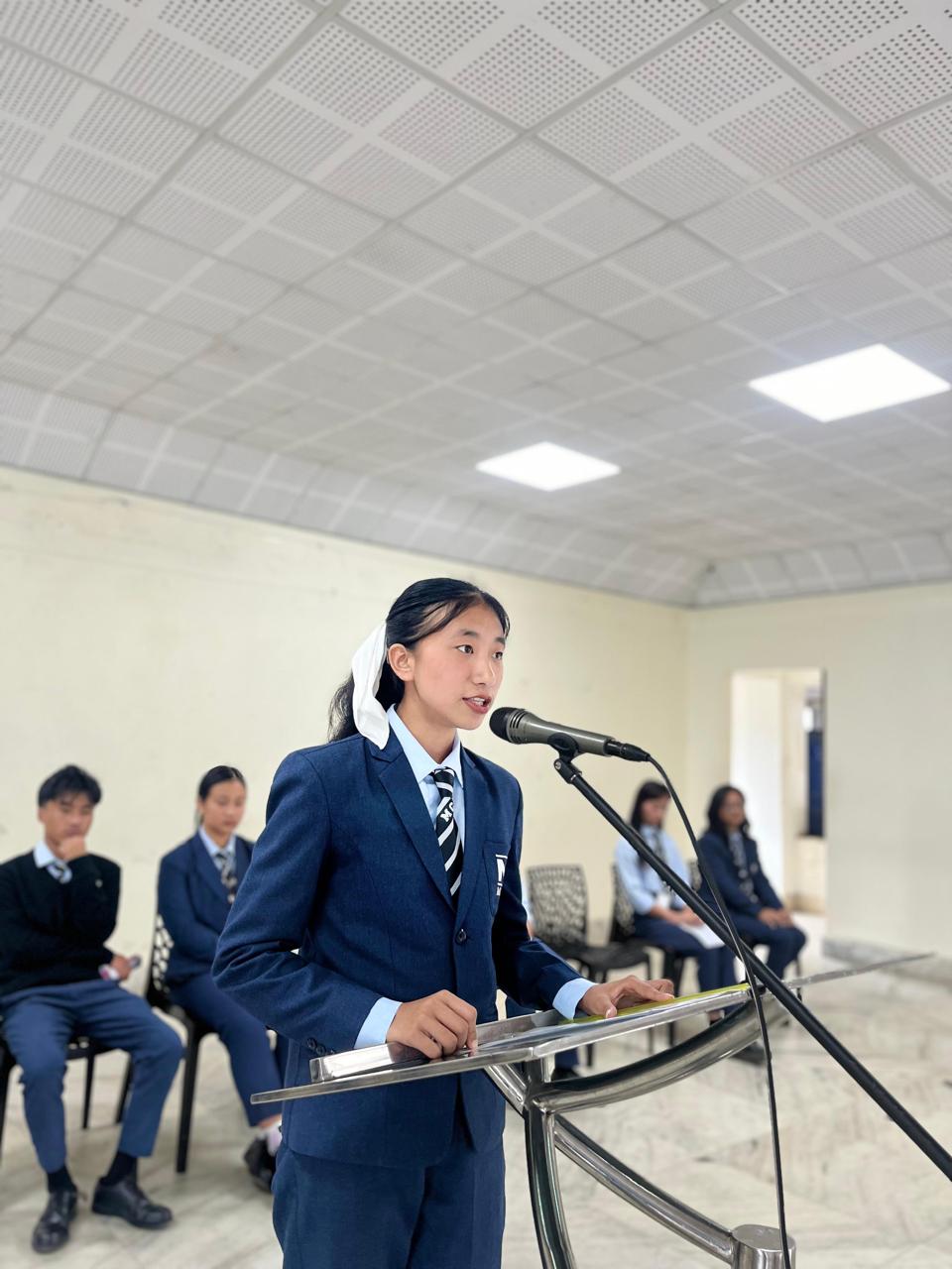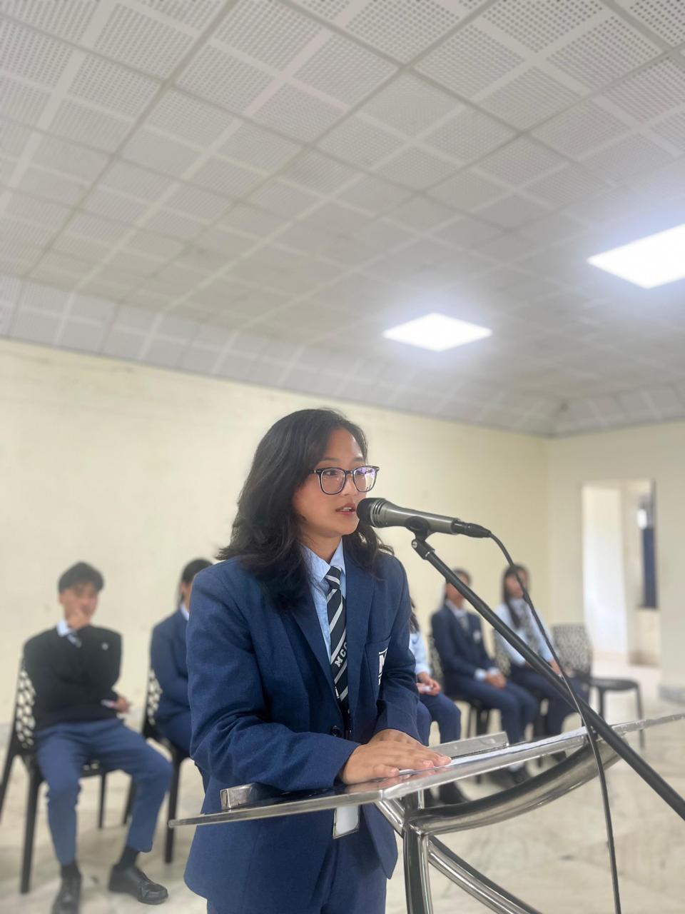 The event featured enriching presentations including The History of Konyak Headhunters, My Land (a folk fusion performance), and The Three Sons: A Naga Origin Myth. The programme was graced by the guest speaker, Meripeni, Under Secretary and Project Lead, NSEDM, and Founder of the Mekhela Wednesday Movement, who encouraged students to value and preserve their cultural heritage.