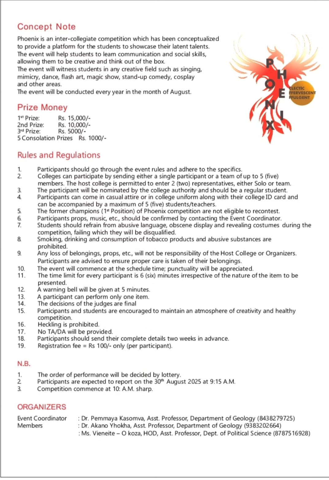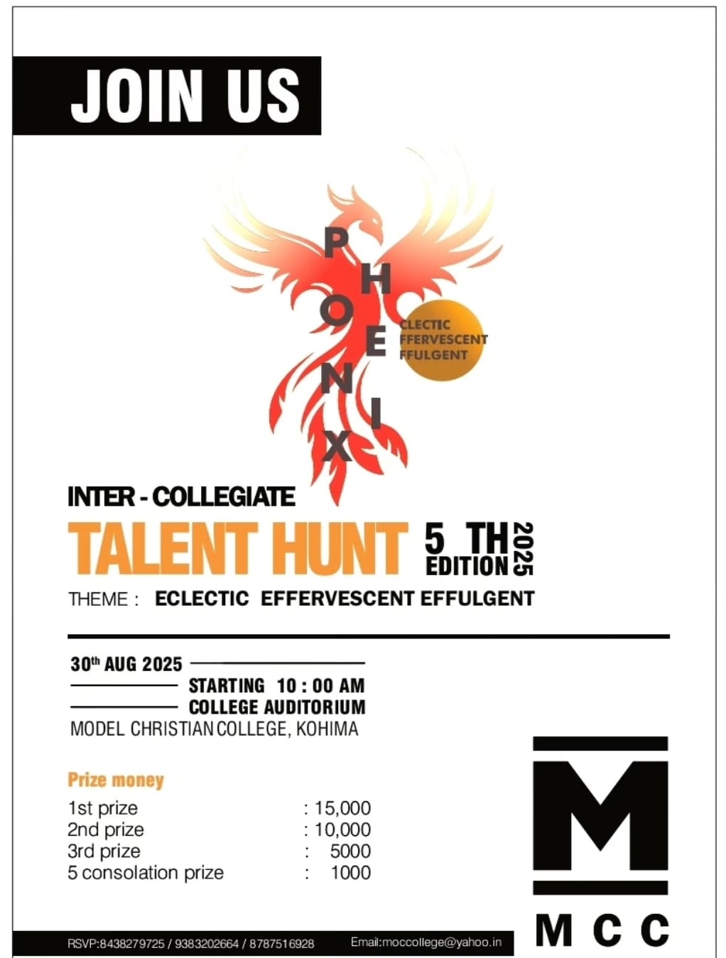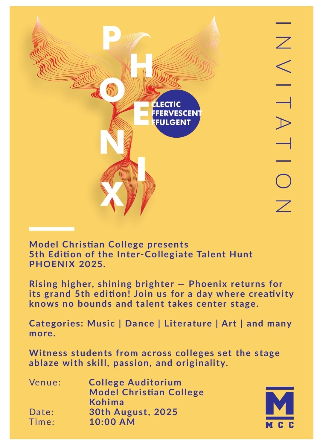 News The upcoming for the 5th Edition Inter-Collegiate Talent hunt PHOENIX, on 30th August, 2025 at Model Christian College